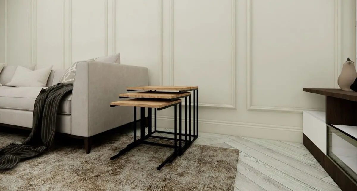 3'lü Metal Ahşap Zigon Sehpa – Şıklık ve Pratiklik Bir Arada!
