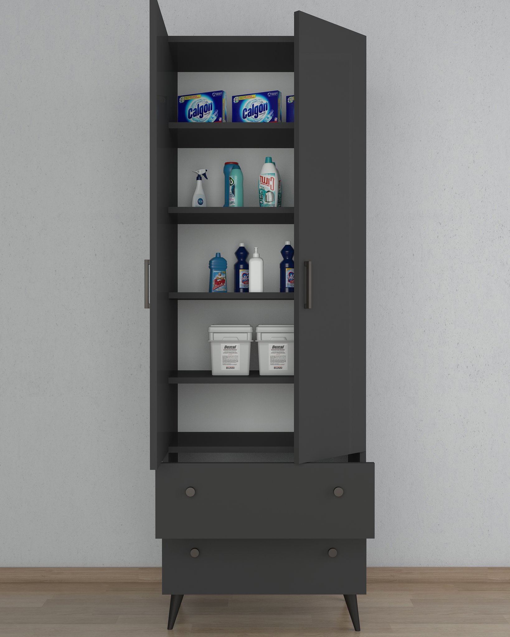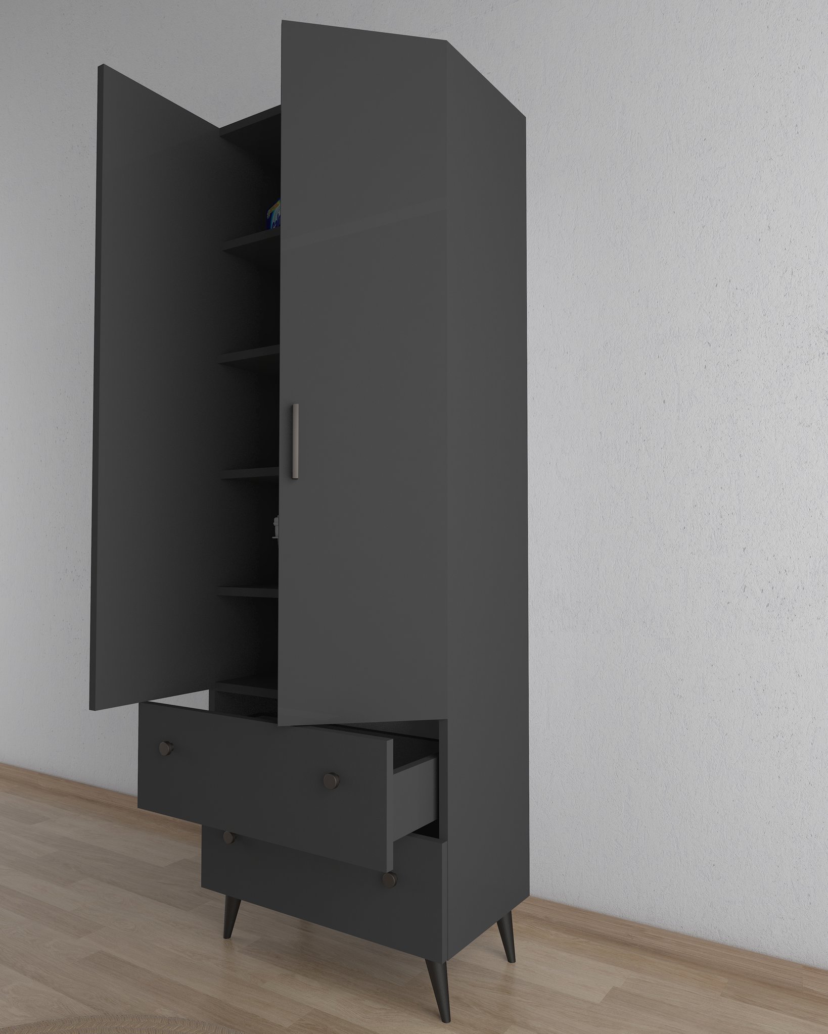 Modern tasarımıyla her mekâna uyum sağlayan bu dolap, kullanışlı bölmeleri sayesinde eşyalarınızı kolayca yerleştirmenizi sağlar. Üst kısmındaki iki kapaklı bölüm, kıyafetler, dosyalar veya kişisel eşyalar için geniş bir saklama alanı sunarken; alt kısımdaki iki çekmece ise küçük eşyalarınızı düzenli ve erişilebilir şekilde muhafaza etmenize yardımcı olur.