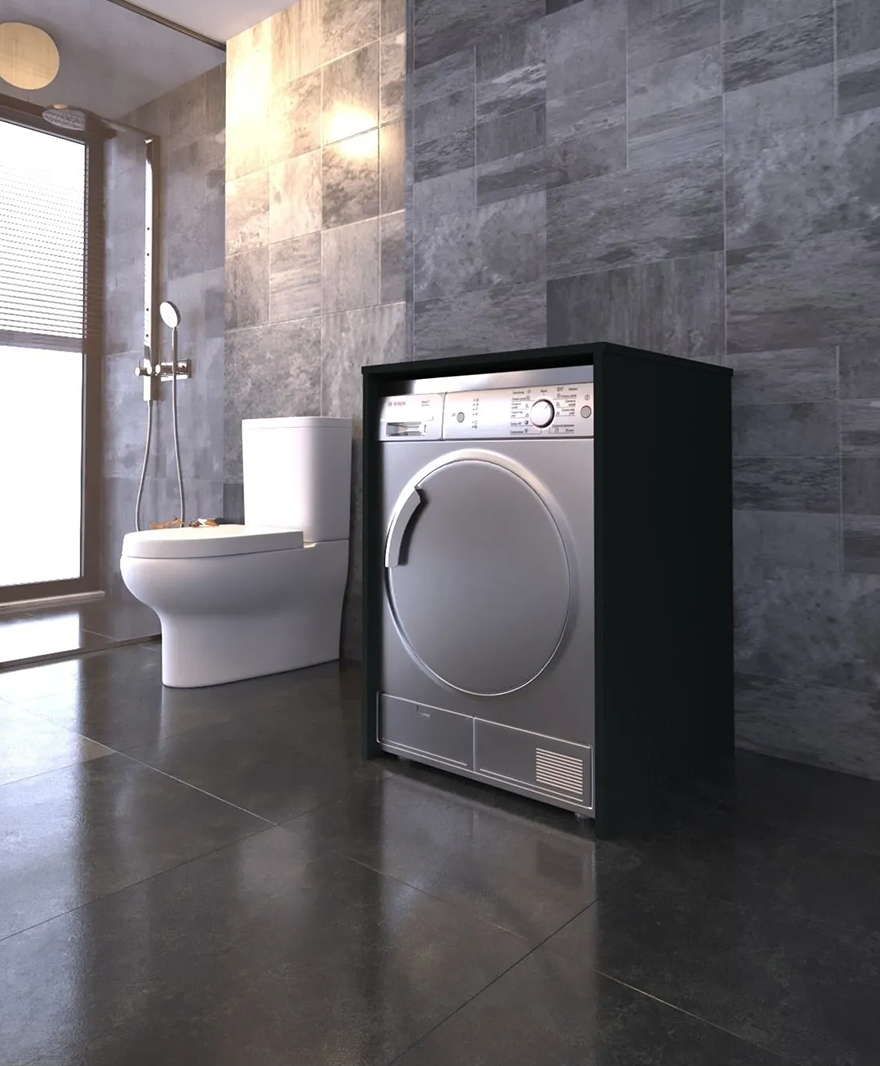 Modern tasarımıyla evinizin dekorasyonuna şıklık katan antrasit çamaşır kurutma makinesi dolabı, hem işlevsel hem de estetik bir çözüm sunar.