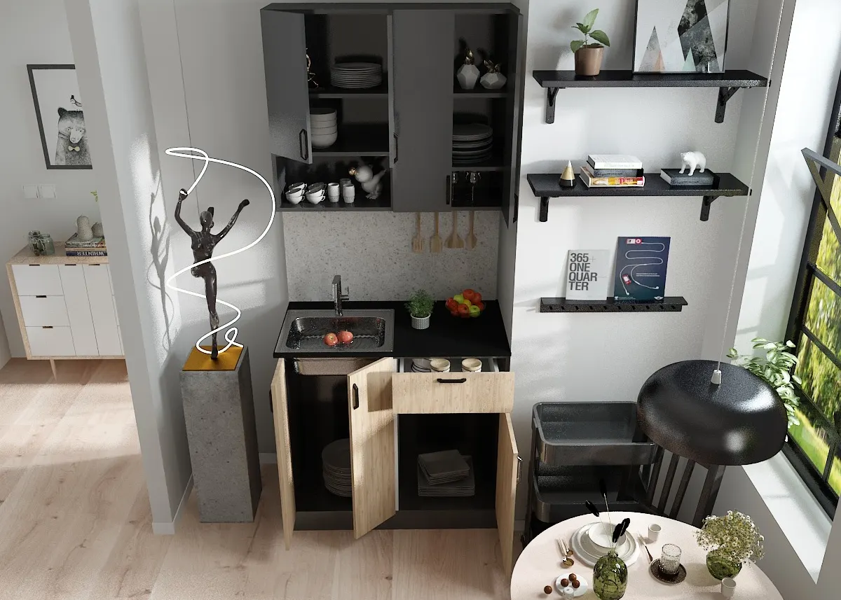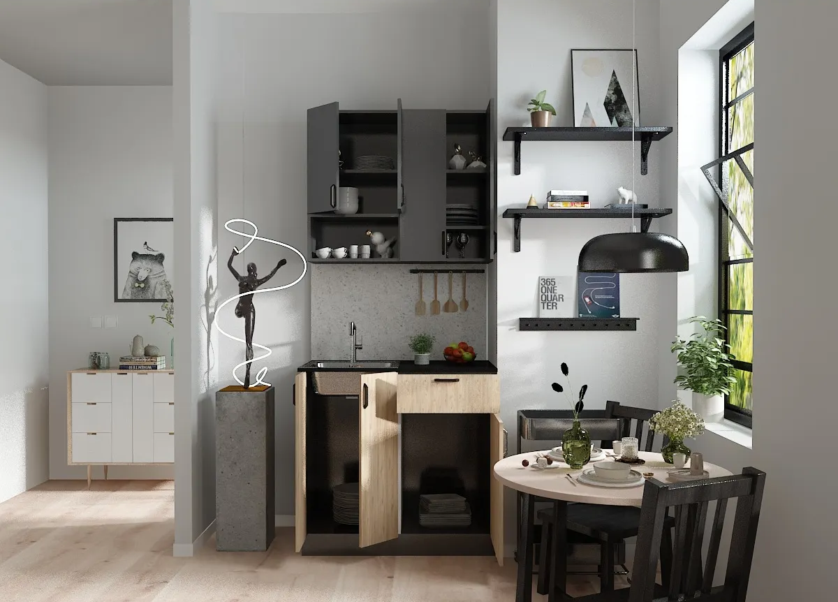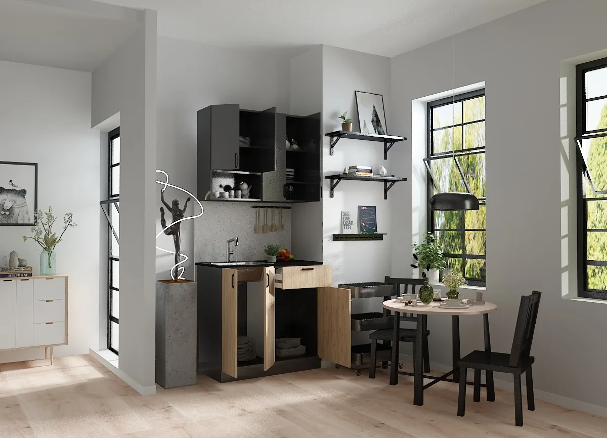 Zarif ve modern bir tasarımla mutfağınıza şıklık katın! Antrasit gövde ve ahşap detaylarla tasarlanmış bu mutfak dolabı, her mutfağa uyum sağlayacak estetik ve fonksiyonellik sunuyor.