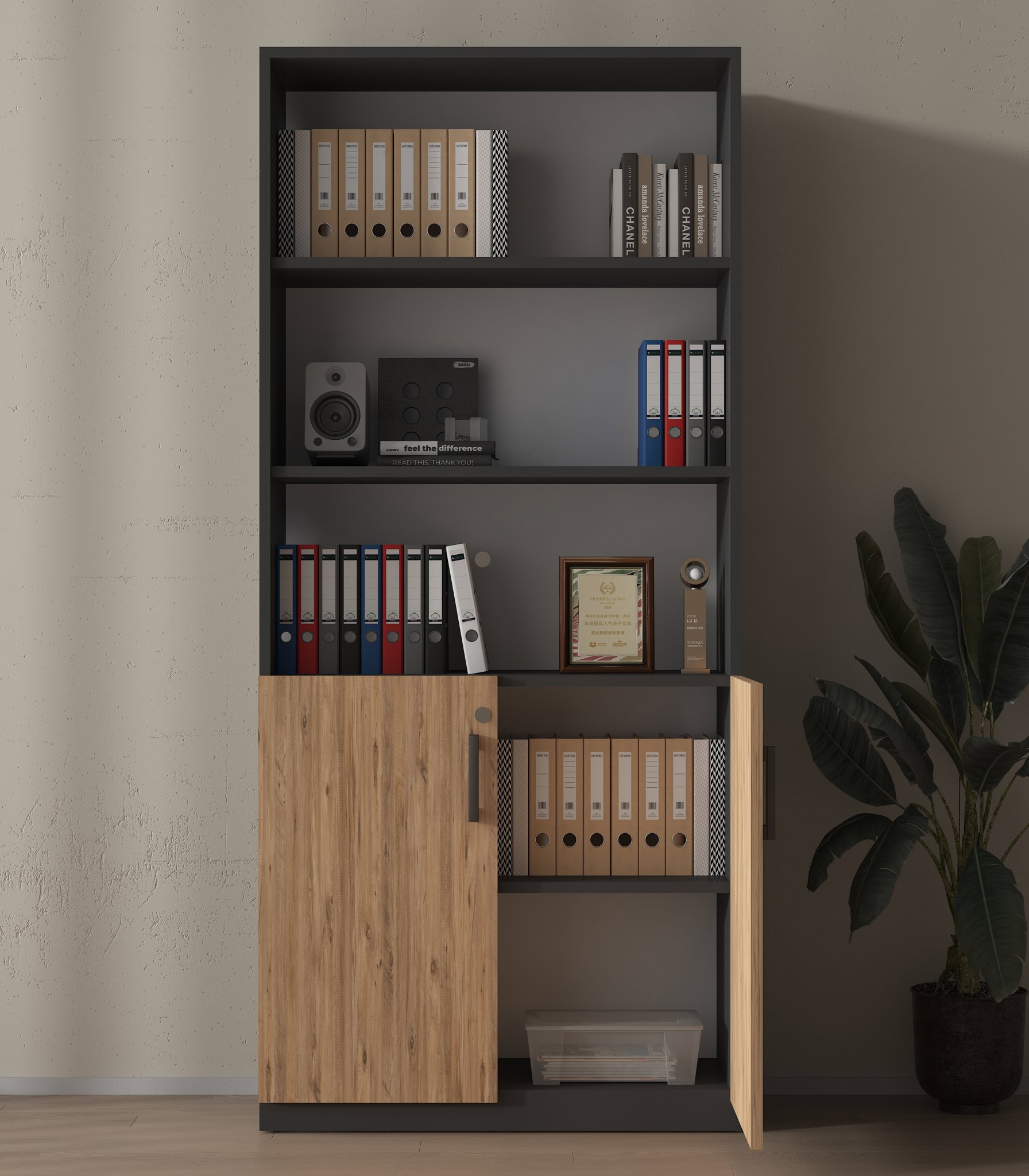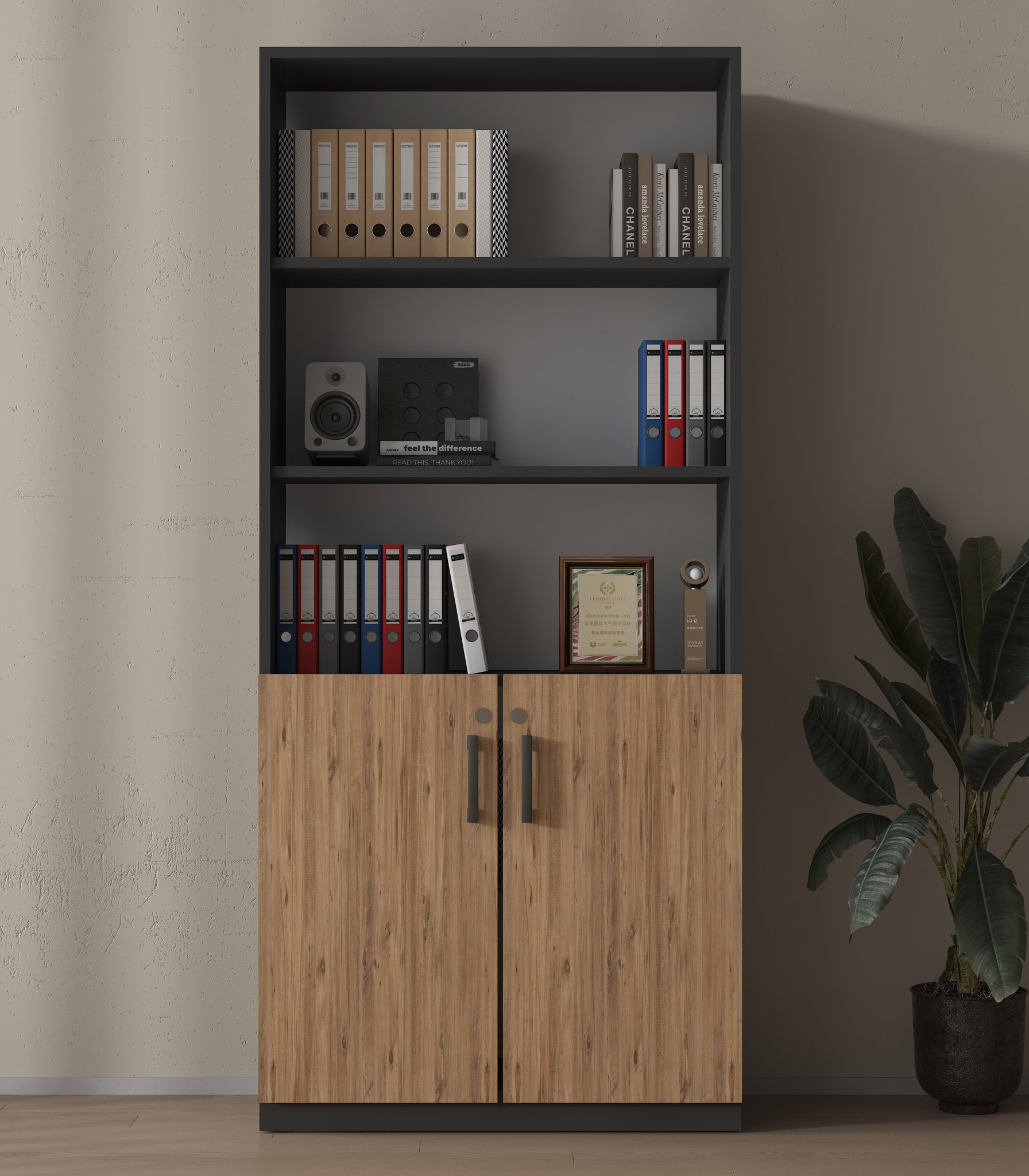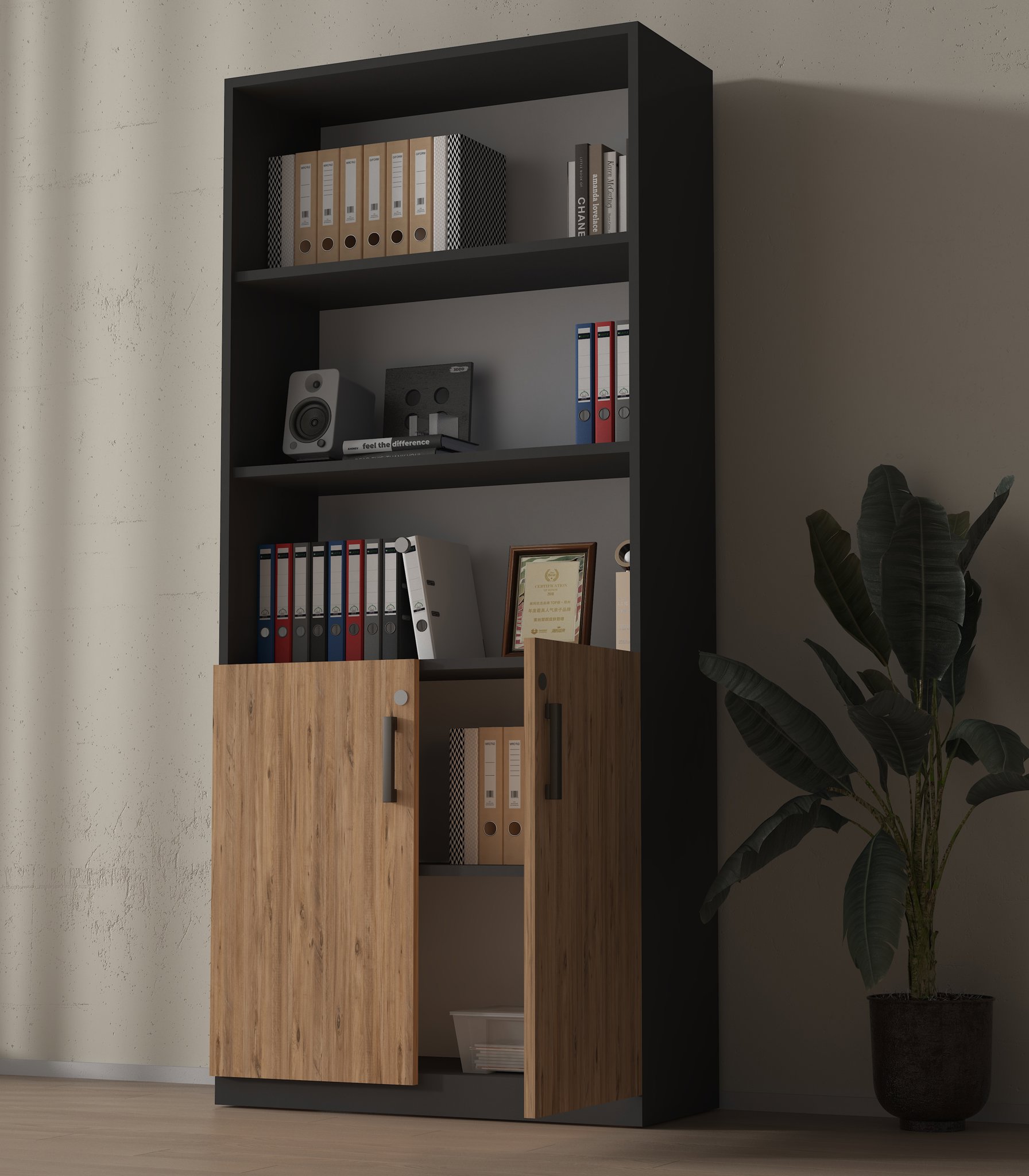 Neden Antrasit Gövde Kilitli Ahşap 2 Kapak Detaylı Ofis Dolabı?