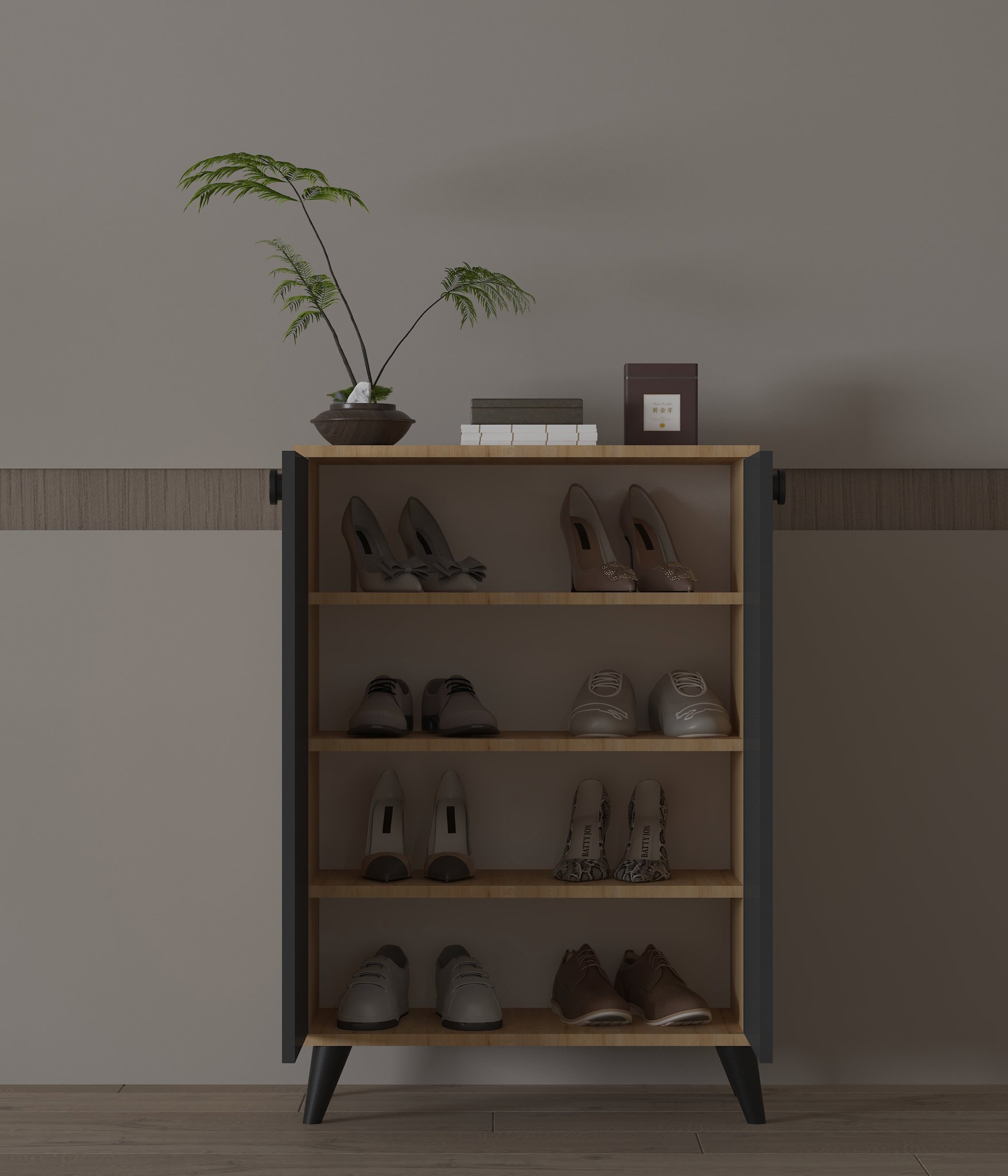 Antrasit - Safir Meşe 2 Kapaklı Ayakkabılık