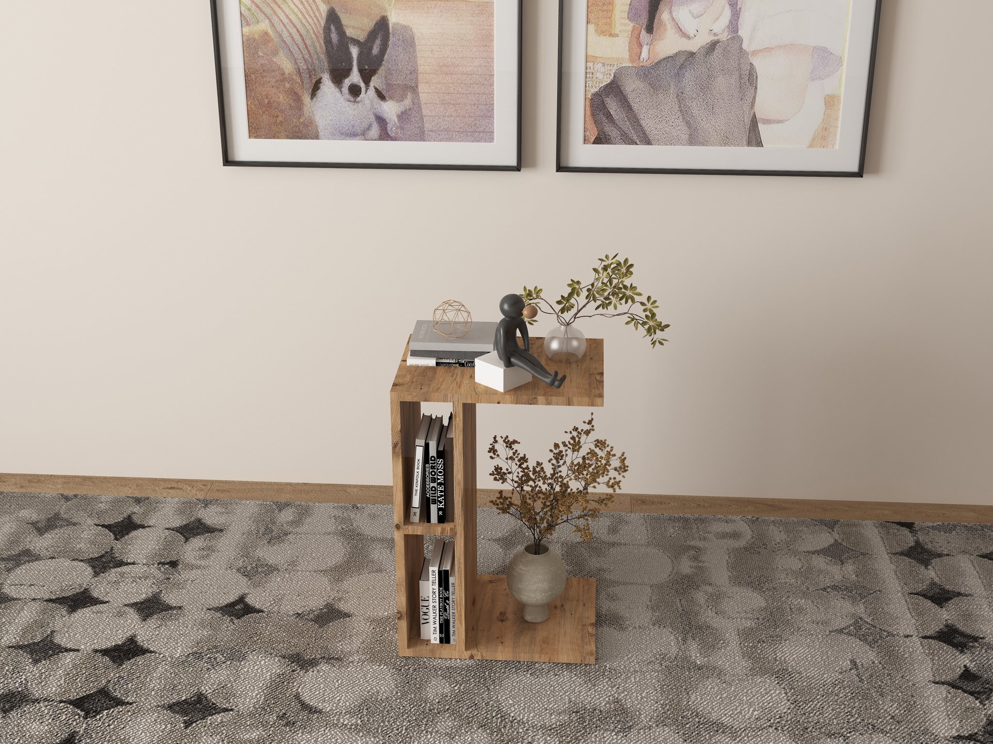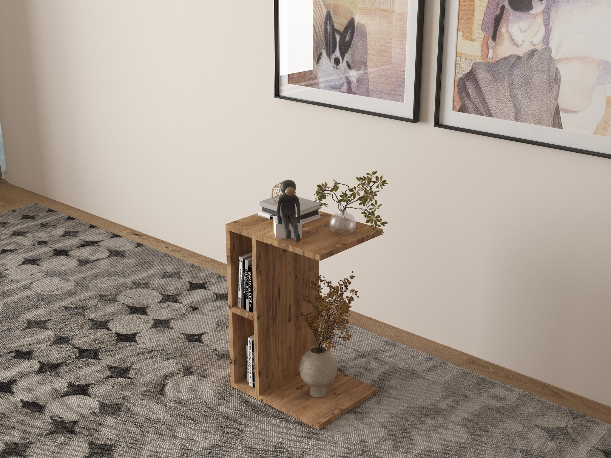 Şık ve pratik tasarımıyla yaşam alanlarınıza zarif bir dokunuş katan 2 raflı koltuk yanı sehpa, antrasit melamin kaplı yonga levha malzeme ile üretilmiştir. Kompakt yapısı ve iki rafı sayesinde küçük alanlarda bile depolama imkânı sunarak, günlük yaşamın ihtiyaçlarına mükemmel uyum sağlar.