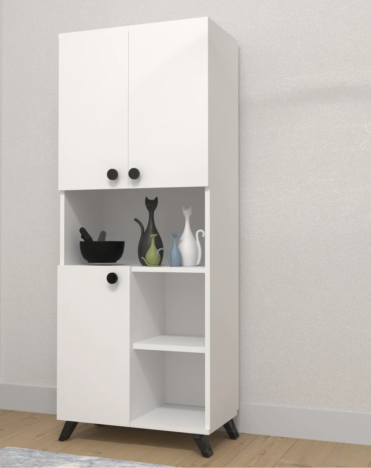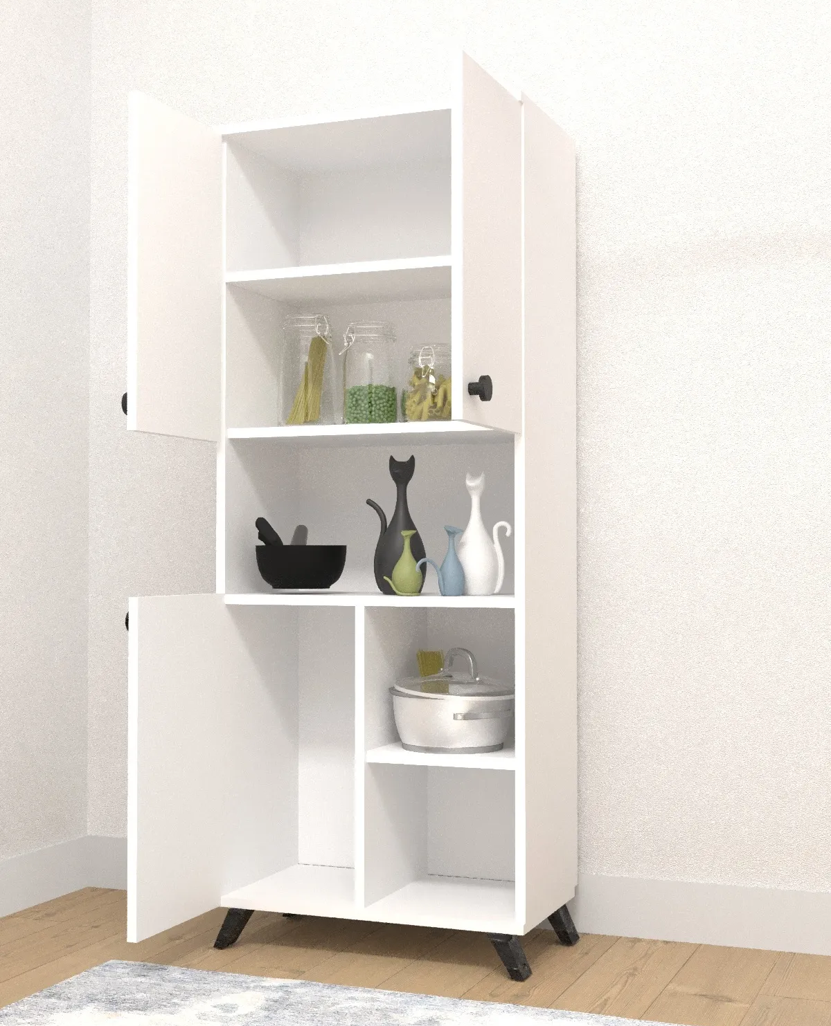 Üç kapaklı tasarımı ve yan rafları ile mutfak eşyalarınızı düzenli bir şekilde saklamanızı sağlar. Hem estetik hem de fonksiyonel bir seçenek.