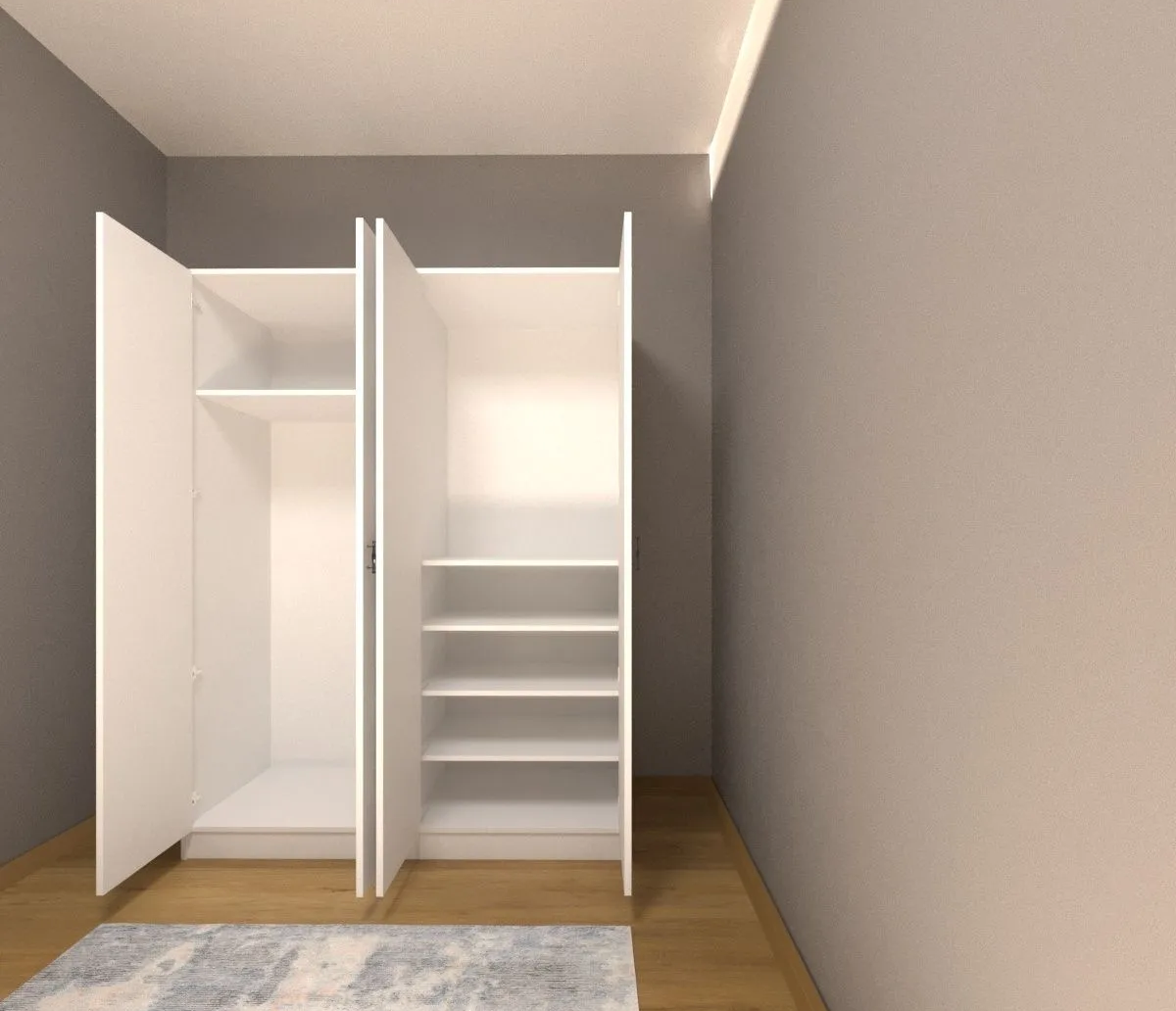 Geniş iç hacmiyle kıyafetlerinizi ve ayakkabılarınızı kolayca organize edin. Şık ve modern tasarımıyla pratik bir depolama çözümü sunar.