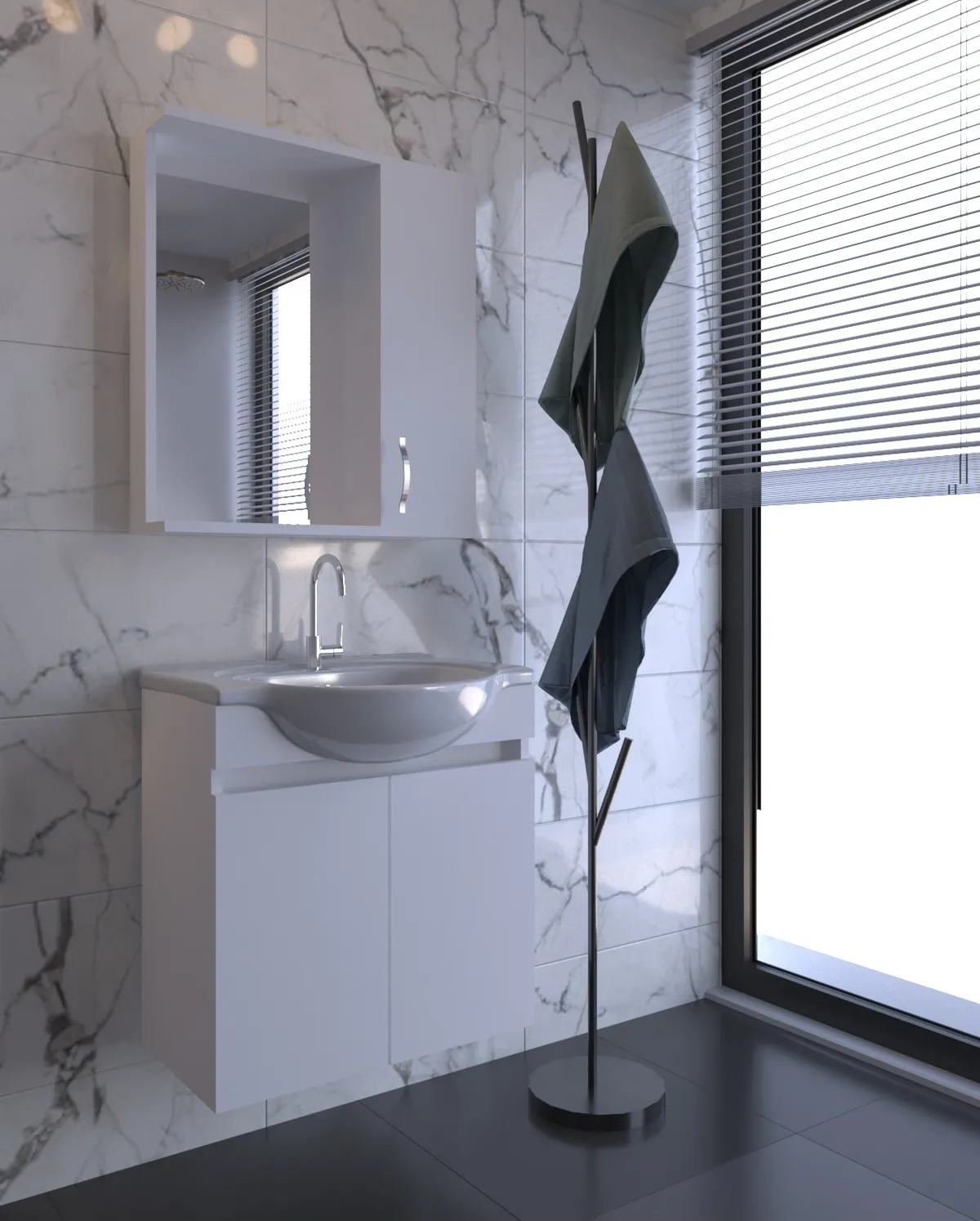Modern tasarımıyla banyonuza şıklık katan beyaz banyo dolabı, aynalı yapısı sayesinde hem kullanışlı hem de estetik bir görünüm sunar.
