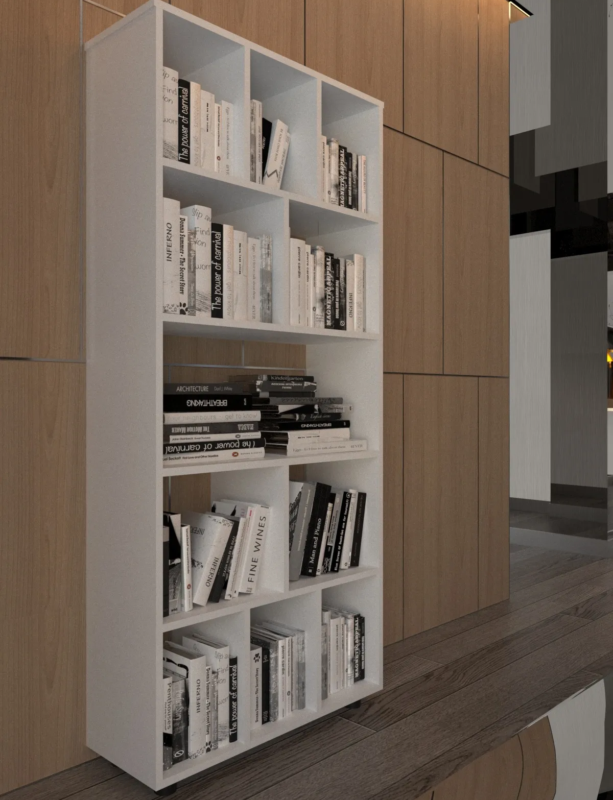 Evinizin her köşesine modern bir dokunuş katacak beyaz dekorasyon kitaplığı, şık ve sade tasarımıyla dikkat çekiyor. Kitaplarınızı düzenli tutarken, aynı zamanda mekanınıza zarif bir hava katacak.