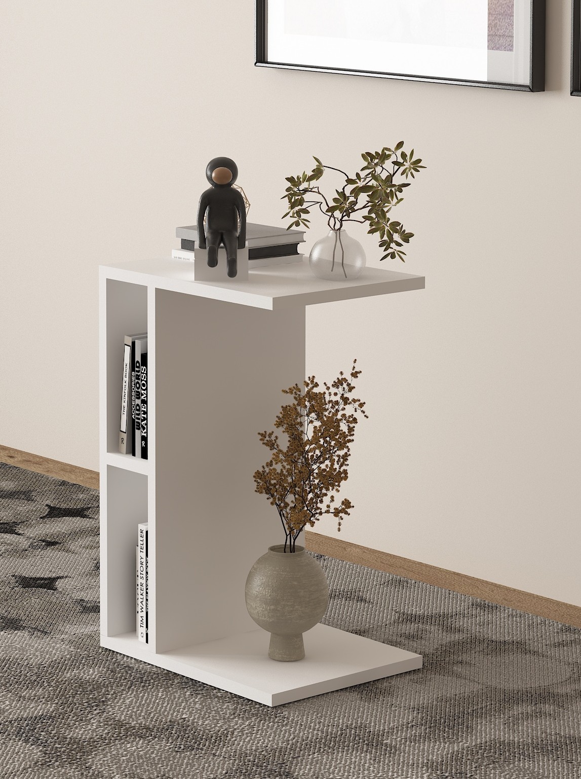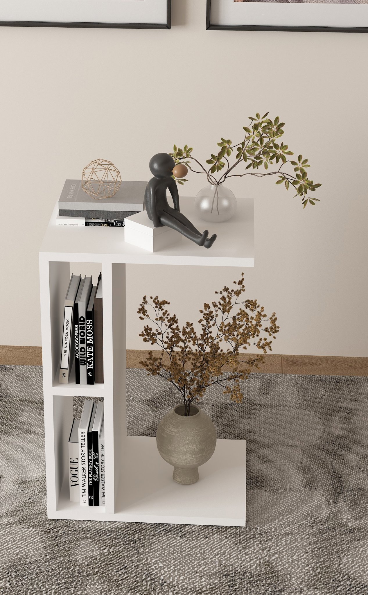 Beyaz 2 Raflı Koltuk Yanı Sehpa