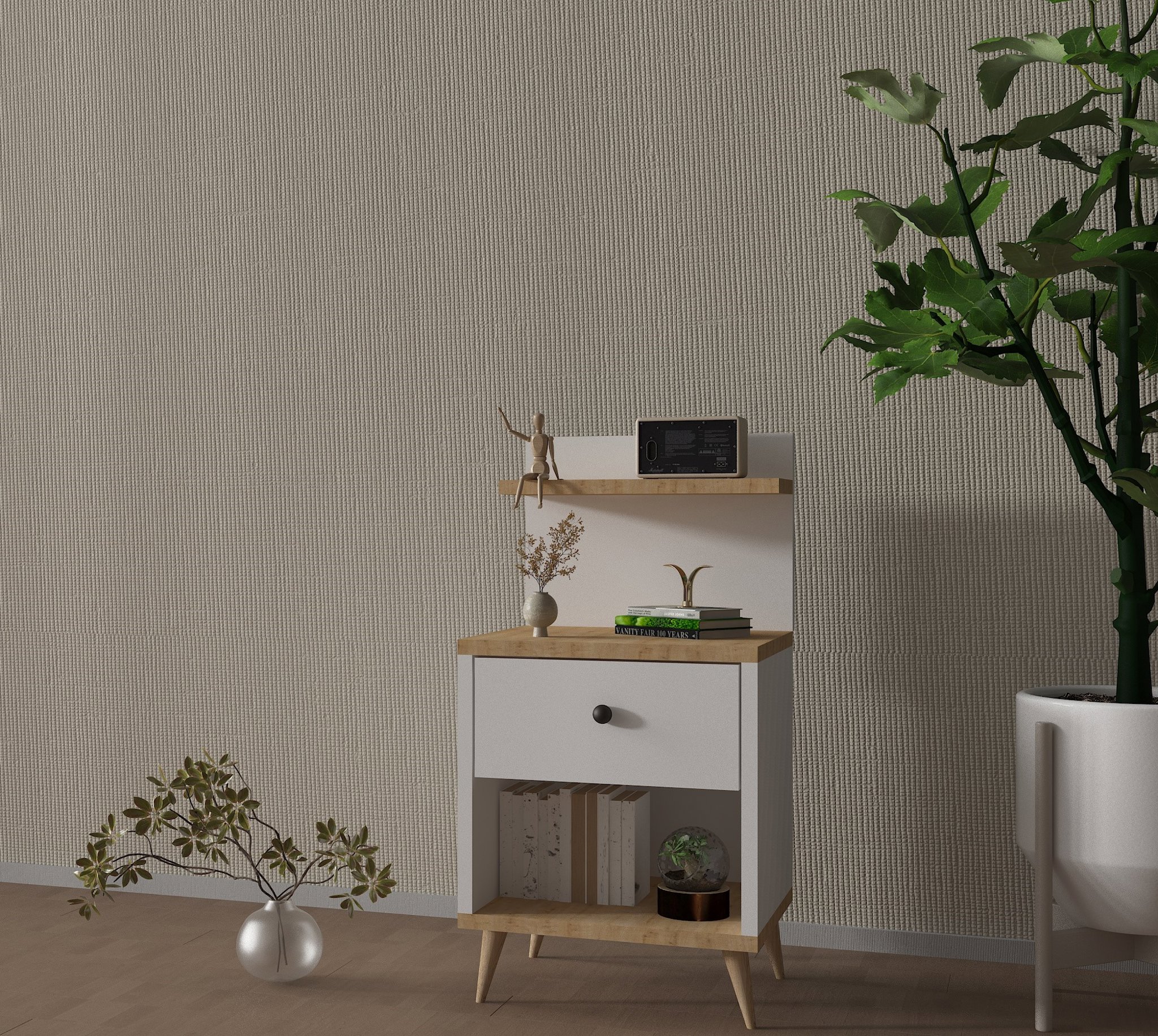 Atlantik Çam Detaylı, Çekmeceli Komodin – Zarif ve Fonksiyonel Tasarım