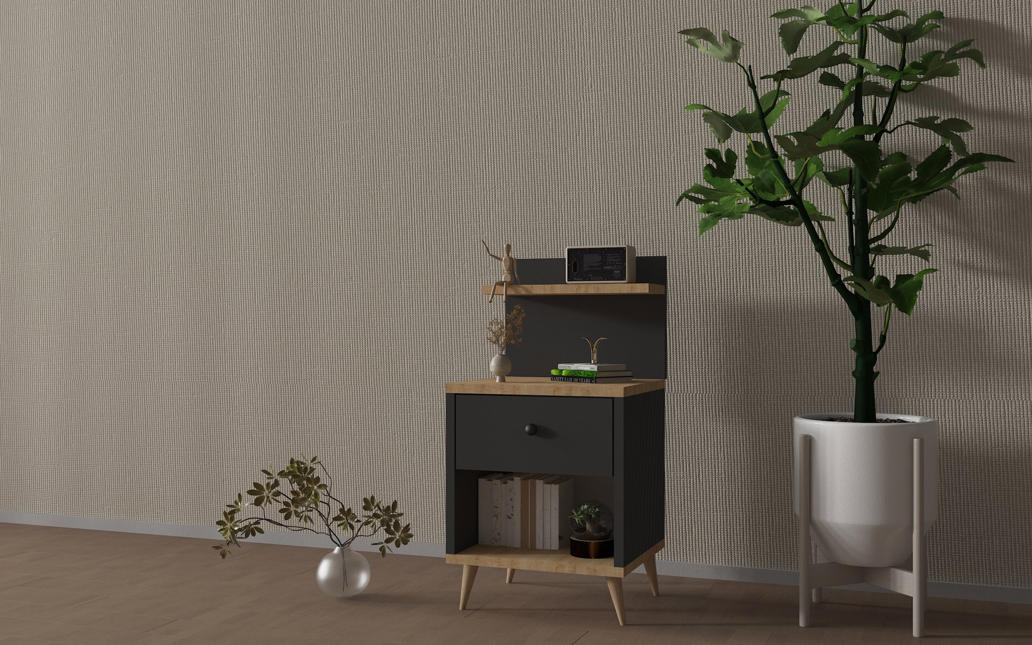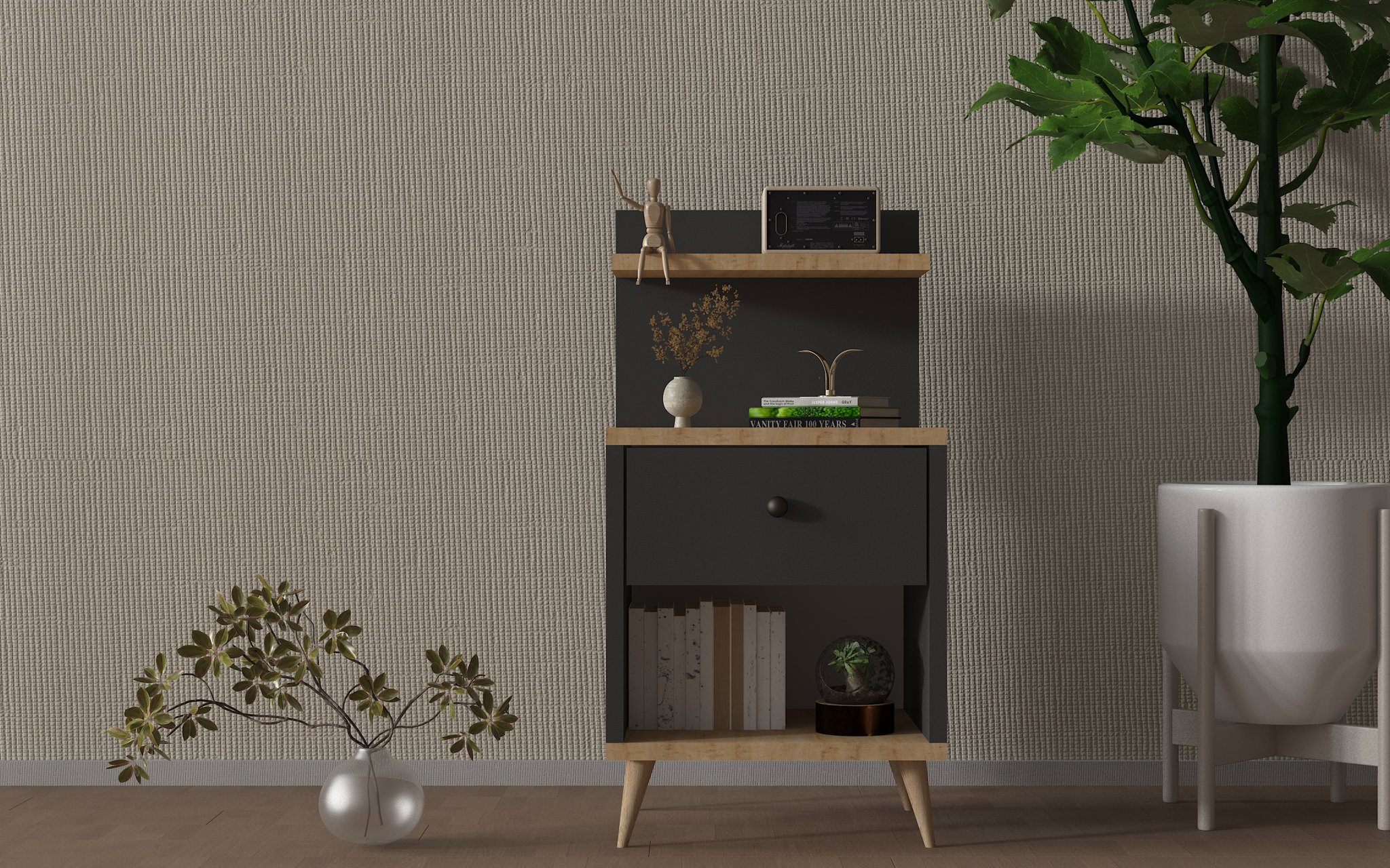Safir Meşe Detaylı Çekmeceli Komodin, antrasit melamin kaplı gövde ve safir meşe detaylarıyla şıklığı ve zarafeti bir arada sunar. Raflı ve çekmeceli tasarımı ile yatak odanızda düzen sağlar ve şık bir görünüm kazandırır.