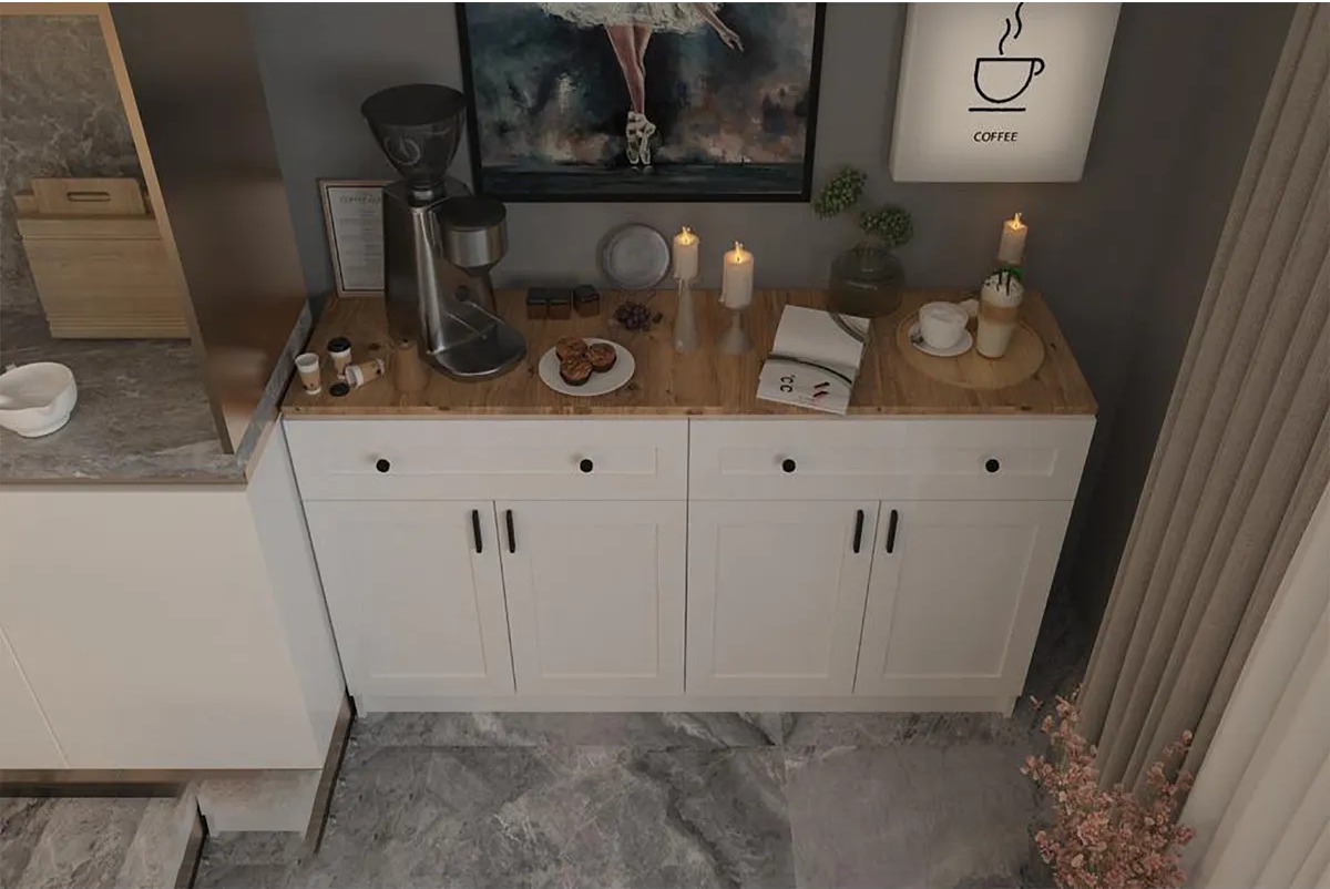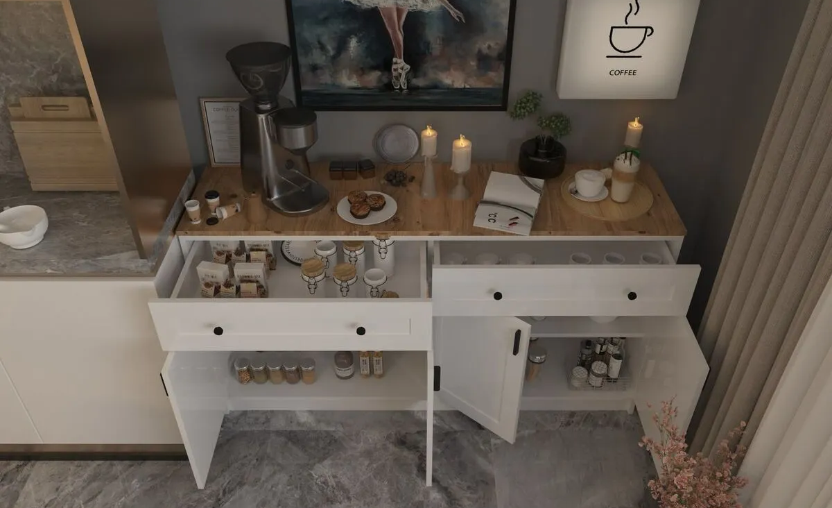 Kahve keyfinizi en şık ve fonksiyonel şekilde sunan bu kahve köşesi, modern tasarımı ile her mekana uyum sağlar. Hem depolama hem de estetik açıdan mükemmel bir seçim.