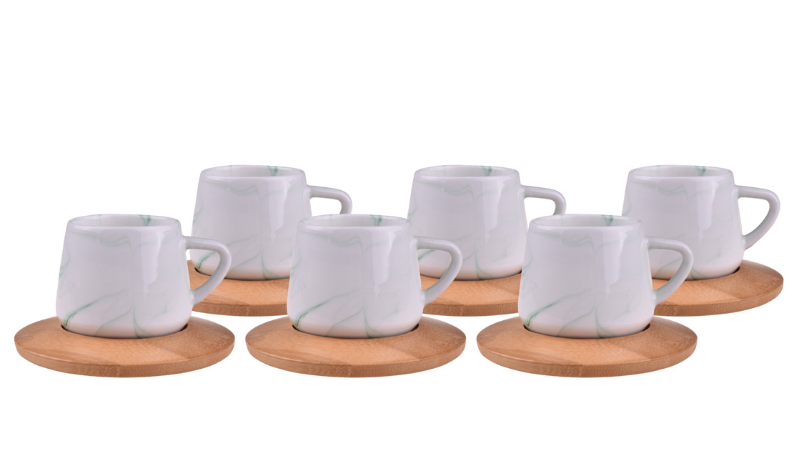 Ebru 6 Kişilik Kahve Fincan Takımı, modern tasarımı ve geleneksel dokunuşlarıyla sofralarınıza zarif bir hava katar. Hem günlük kullanımda hem de özel misafirler için ideal bir tercihtir.
