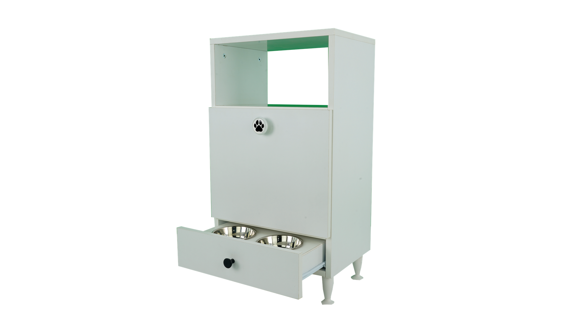 Evcil Hayvan Mama Dolabı, beyaz melamin kaplı yonga levha gövdesi ve MDF üzeri membran kaplama kapaklarıyla dayanıklı ve estetik bir tasarıma sahiptir. Evcil hayvanlarınızın mamalarını düzenli ve güvenli bir şekilde saklayabileceğiniz mükemmel bir dolap.
