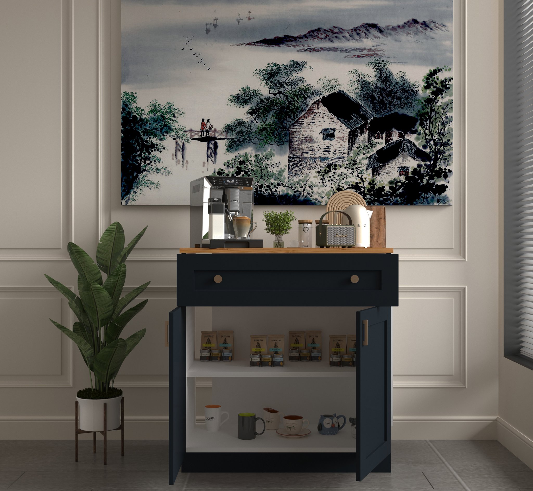 Kahve keyfinizi şıklıkla buluşturun! Mavi Modern Kahve köşesi, minimal tasarımı ve modern çizgileriyle her mekana zarafet katar. Dayanıklı melamin kaplı yonga levha malzemesi sayesinde uzun ömürlü kullanım sunarken, işlevsel tasarımı ile kahve ekipmanlarınızı düzenli ve erişilebilir bir şekilde saklamanıza olanak tanır.