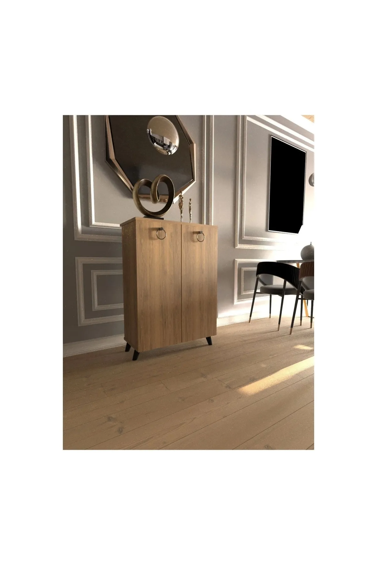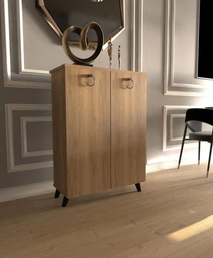 Dayanıklı Ahşap Yapı: Ayakkabılığın sağlam yapısı, yüksek kaliteli ahşap malzemeden üretilmiştir. Uzun ömürlü ve dayanıklı olan bu ayakkabılık, yıllarca güvenle kullanılabilir. Ahşap yüzey, modern iç mekanlara sıcaklık ve doğal bir dokunuş katar.