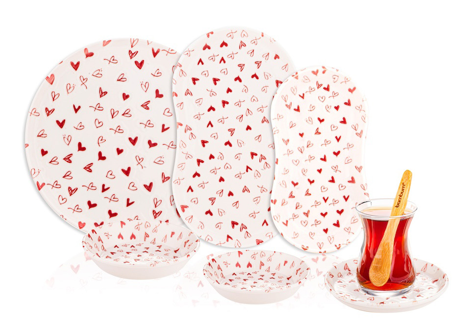 Zarif ve Modern Tasarım: Pera Love takımı, sade ama şık çizgilerle tasarlanmış, zarif desenler ve detaylarla bezenmiştir. İnce hatlar ve modern desenler, her tür masa düzenine uyum sağlar ve sofranıza sofistike bir hava katar. Takım, hem geleneksel hem de çağdaş masalarla mükemmel uyum sağlar.