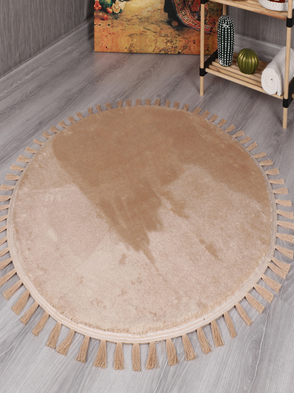 Evinize Zarif Bir Dokunuş Ekleyin! Püskül Saçaklı Yuvarlak Halı, estetik ve konforu bir arada sunarak evinize şıklık katacaktır. Şimdi sipariş verin, yaşam alanınızı güzelleştirin!