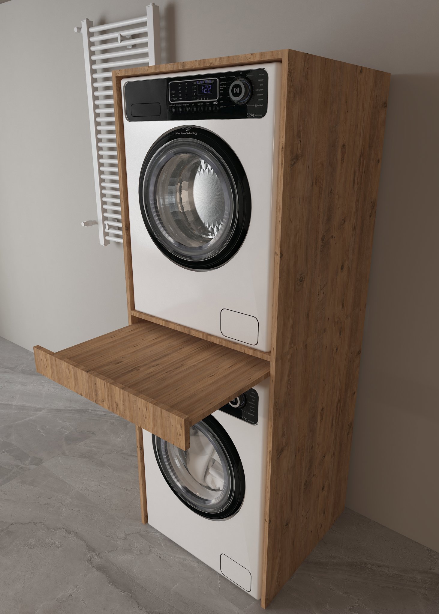Çekmeceli Çamaşır ve Kurutma Makinesi Dolabı - Safir Meşe