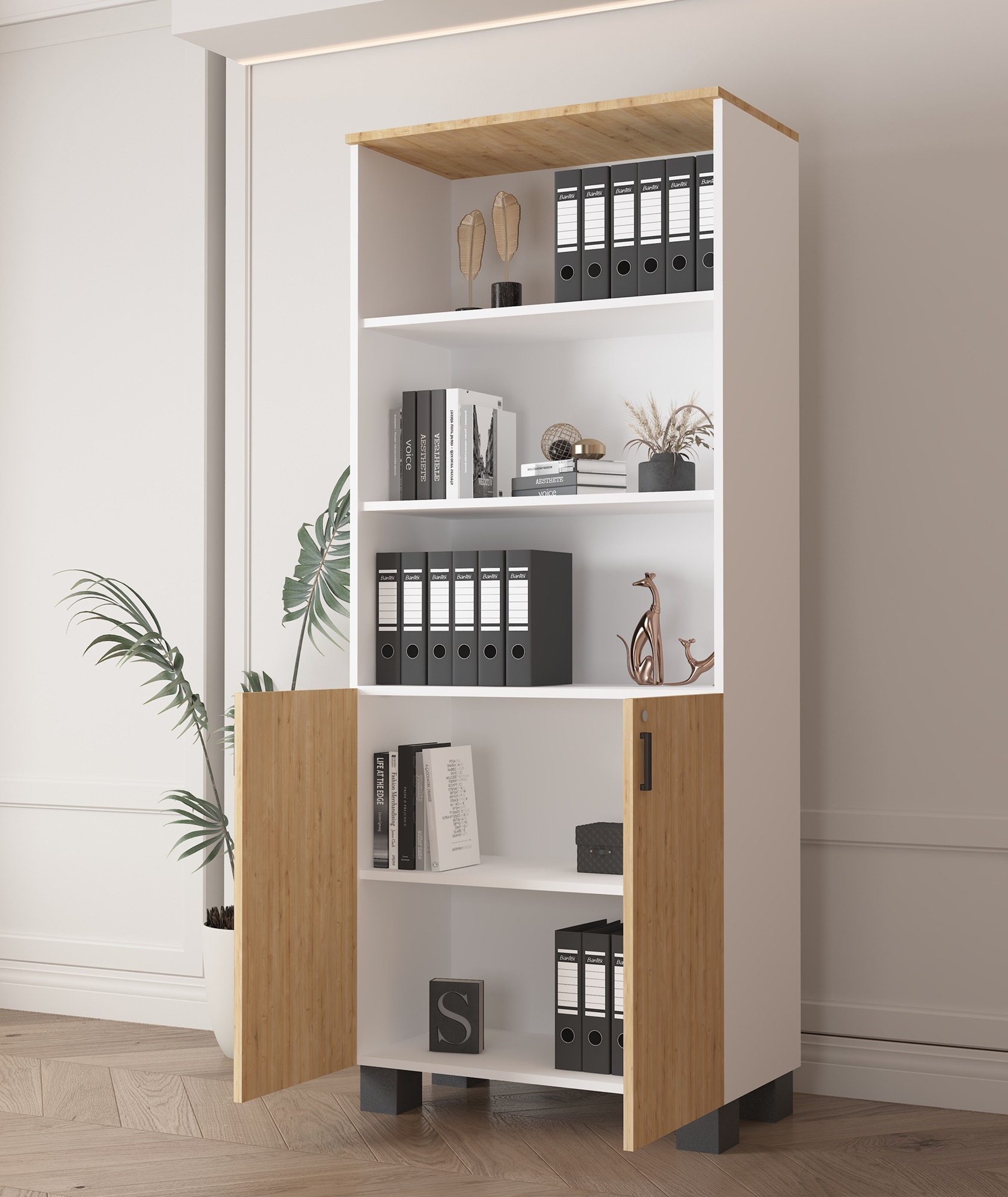 - Safir Meşe rengiyle ofisinize şıklık katan, derinliği 40 cm olan bu ofis dolabı, geniş çalışma alanları sunar.- İki kapaklı tasarımı ile hem estetik bir görünüm sağlar hem de eşyalarınızı düzenli bir şekilde saklamanızı kolaylaştırır.- Genişliği 80 cm olan bu dolap, büyük dosya rafları ve diğer ofis malzemelerini rahatça barındırabilir.- Yerli üretimdir; Türk malı olması gururunu yaşatırken kalite standartlarından ödün vermez.- Suntalam materyali sayesinde dayanıklı yapısıyla uzun süreli kullanım vaat ederken, kolay temizlenebilir yüzeyi pratiklik kazandırır.- Üç rafı bulunması sayesinde farklı boyutlardaki eşyalarınız için ideal depolama çözümleri sunar.- Yüksekliği 190 cm olan bu ofis dolabı, modern ofis dekorasyonlarına uyum sağlayacak zarif bir yüksekliğe sahiptir.