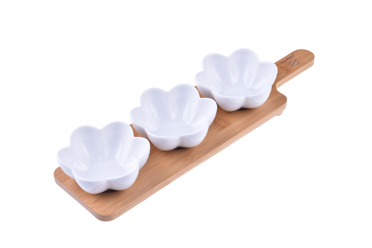 Estetik ve Kullanışlı Tasarım: Sesta 4 Parça Çerezlik, geniş ve uzun tasarımı sayesinde birden fazla atıştırmalığı düzenli bir şekilde sunmanıza imkan tanır. Farklı boyutlardaki bölmeleri, çerezlerinizi, kuruyemişlerinizi, meyvelerinizi veya tatlılarınızı düzenli ve şık bir şekilde sergileyebilmenizi sağlar. Hem işlevsel hem de estetik açıdan oldukça zarif olan bu set, sofranıza modern bir hava katar.