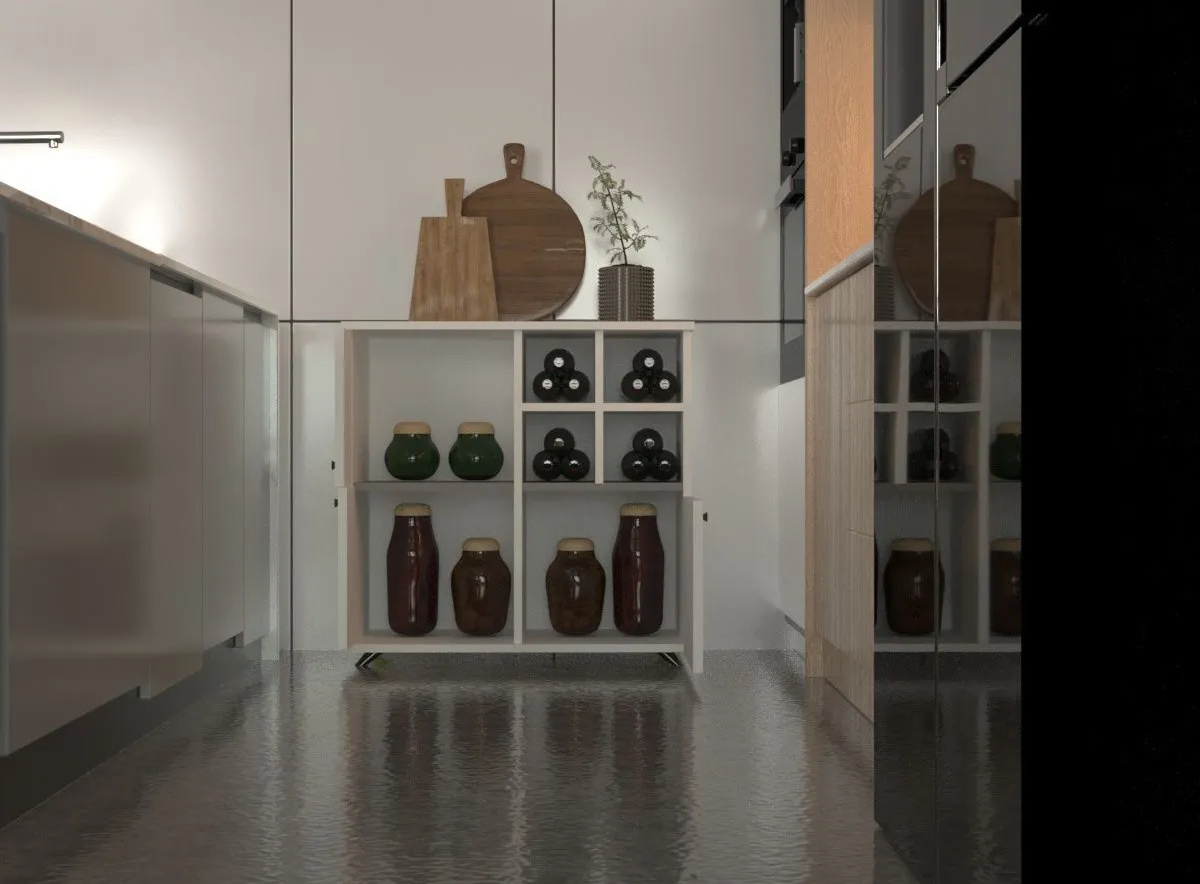 Açık raflı modern kahve köşesi